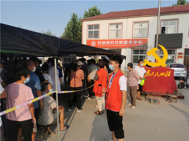 抗洪戰(zhàn)斗剛剛結(jié)束,疫情又席卷而來。疫情就是命令,服從當?shù)攸h支部調(diào)配,李文博(19級藥品經(jīng)營與管理專業(yè))同學積極參與蘭考縣紅廟鎮(zhèn)雙楊樹村疫情防控志愿活動。他于八月初得知家鄉(xiāng)疫情防控急需志愿者并第一時間與村委黨支部聯(lián)系報名參加志愿活動。他在疫情防控卡點為來往村民測量體溫,并進行個人信息登記,指導村民進行健康碼自查以及檢查是否存在有與確診病例者密切接觸的情況。在蘭考全員核酸檢測期間,參與了組織紀律、引導村民文明檢測核酸的工作。