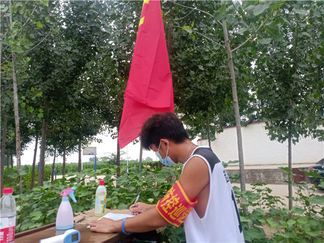 趙文正,20級體育保健與康復專業(yè),在暑假期間參與新鄉(xiāng)市封丘縣黃陵鎮(zhèn)疫情防控志愿工作。當時防控處于關鍵階段,需要足夠的人手加入到疫情防控工作中。作為一名大學生,積極響應團委號召,加入所在村村委防疫工作小組。他在村口對入村人員進行體溫測量和信息登記;在村委會幫助老年人填寫身份登記表和因洪澇災害造成的田地受損面積的信息,同時對沒有進行疫情信息登記的人員進行排查和再登記。
