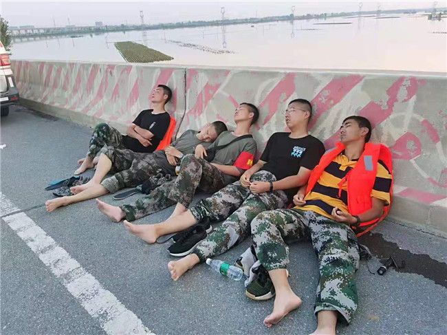 遵從集中專業(yè)優(yōu)勝的原則,田留青重新被調(diào)整到衛(wèi)輝救援第一線去。途徑共產(chǎn)主義渠大橋時他們接到就近轉(zhuǎn)移過河群眾的任務(wù),田留青迅速下車,在炎熱的太陽下維持秩序、轉(zhuǎn)移上下船群眾。盡管頭部被曬傷,胳膊上也起了大面積的水泡,但他始終沒有停下腳步,連續(xù)奮戰(zhàn)十三個小時,直到與其他救援隊輪換休息,疲憊的他才靠著橋的護欄坐下來,稍微休息一下。