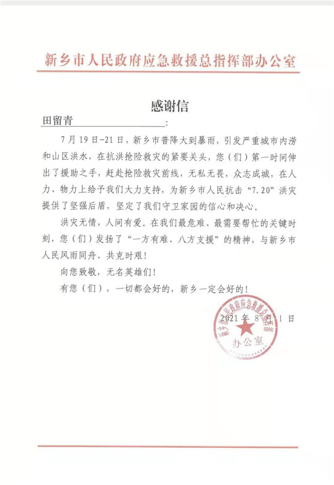救援結(jié)束后田留青返回了家鄉(xiāng),他還收到了新鄉(xiāng)市政府的感謝信。8月初,他又有了新的身份,成為社區(qū)的一名防疫志愿者。每天從早到晚,他一直在忙碌著:登記來訪人員、量測體溫、防疫消殺……“我也有一份清澈的愛,想要獻給祖國和人民。”田留青希望自己能貢獻出更多的青春力量。