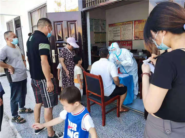 “前兩天主要是在做一些宣傳防疫方面的工作。8月7號我們村進(jìn)行了第一輪核酸檢測,當(dāng)時因為我是第一次做這種工作,所以村委會并沒有安排我直接操作去給村民進(jìn)行核酸檢測,更多地是給醫(yī)護(hù)人員做一些輔助性的工作。”在核酸檢測期間,段夢嬌主要負(fù)責(zé)協(xié)助村民們掃檢測二維碼,登記核酸檢測人員身份信息,輔助醫(yī)護(hù)人員掃試劑信息碼,并掃描對應(yīng)該試劑的檢測人的檢測碼(十合一病毒采樣管)等一系列核酸檢測輔助工作。