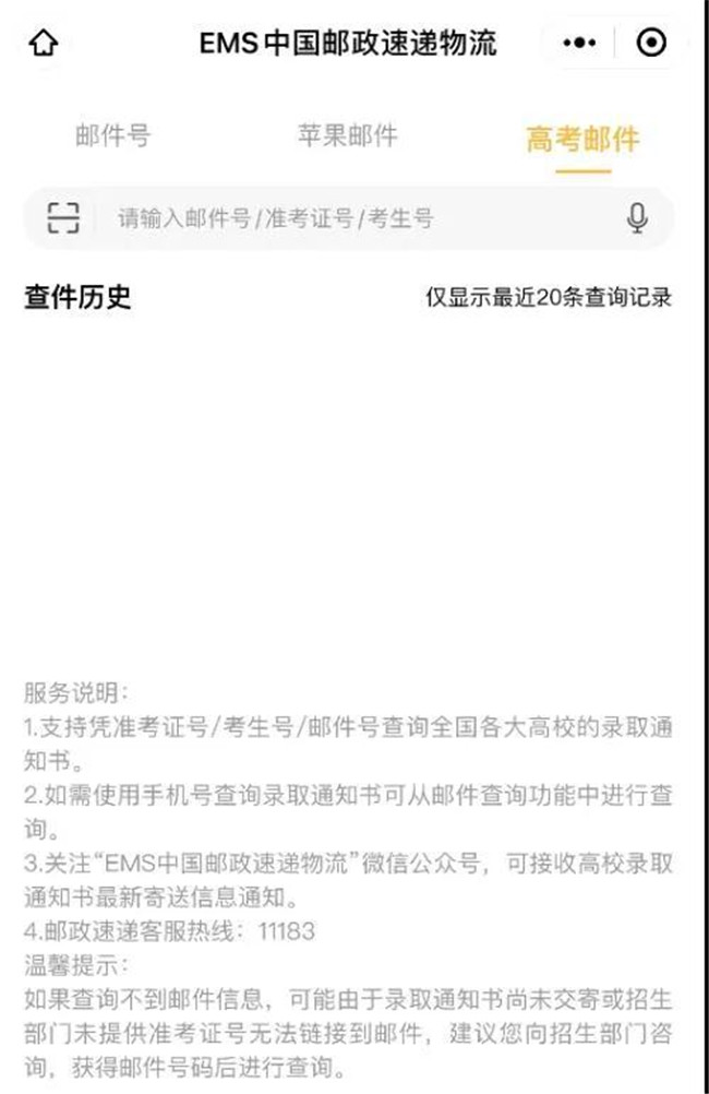 通知書狀態(tài)簡單可查,利用微信查詢:進入微信公眾號,并關(guān)注:中國郵政速遞物流,公眾號關(guān)注后,輸入“準考證號碼”或“手機號碼”進行查詢