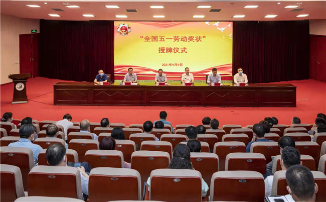 授牌儀式上,喬建民宣讀了中華全國(guó)總工會(huì)《關(guān)于表彰2021年全國(guó)五一勞動(dòng)獎(jiǎng)和全國(guó)工人先鋒號(hào)的決定》;楊會(huì)卿為學(xué)校頒發(fā)“全國(guó)五一勞動(dòng)獎(jiǎng)狀”,并代表省總工會(huì)向?qū)W校表示熱烈祝賀,向?qū)W校全體教職工致以教師節(jié)問候和美好祝福,向一直以來關(guān)心支持工會(huì)工作的學(xué)校領(lǐng)導(dǎo)和廣大教職工以及多年來為工會(huì)工作作出貢獻(xiàn)的廣大工會(huì)干部表示衷心的感謝。
