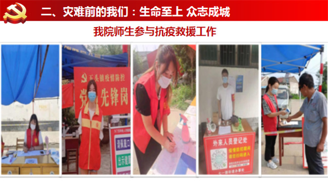 每個(gè)時(shí)代都有青年乘風(fēng)弄潮,勇?lián)厝。革命年代的何叔衡、劉仁靜、江姐、董存瑞和爬雪山過草地的紅軍戰(zhàn)士們,是不怕犧牲,英勇斗爭的中國青年,他們?yōu)閷?shí)現(xiàn)救國救民拋頭顱,灑熱血,為新中國的成立做出了巨大的貢獻(xiàn);建設(shè)時(shí)期的鄧稼先和王進(jìn)喜,是堅(jiān)守理想、矢志報(bào)國的中國青年,他們堅(jiān)守理想,矢志報(bào)國,為共和國的事業(yè)打下了堅(jiān)實(shí)的基礎(chǔ);改革開放時(shí)期的胡福明和嚴(yán)宏昌,是解放思想、銳意進(jìn)取的中國青年,他們沖破禁錮思想的束縛,為共和國的發(fā)展注入源源不斷的活力;新時(shí)代全國脫貧攻堅(jiān)先進(jìn)個(gè)人黃文秀,碩士研究生畢業(yè)后,主動(dòng)請纓到貧困村擔(dān)任駐村第一書記,帶領(lǐng)群眾發(fā)展多種產(chǎn)業(yè),為村民脫貧致富傾注了全部心血和汗水。還有前段時(shí)間面對(duì)突如其來的暴雨和新冠疫情,一個(gè)個(gè)青年聞令而動(dòng)、挺身而出、逆流而上,主動(dòng)請纓到一線....歷史證明,在追趕世界歷史大勢的競爭中,中國青年絲毫不輸于任何一個(gè)民族的青年。王書記用生動(dòng)鮮活的例子使同學(xué)們深切體會(huì)到青春力量是如何創(chuàng)造青春中國的,只有懷揣這份家國之愛、人民之愛,有一分熱,發(fā)一分光,才能匯聚成驅(qū)動(dòng)中原更加出彩、中華民族偉大復(fù)興的蓬勃力量。