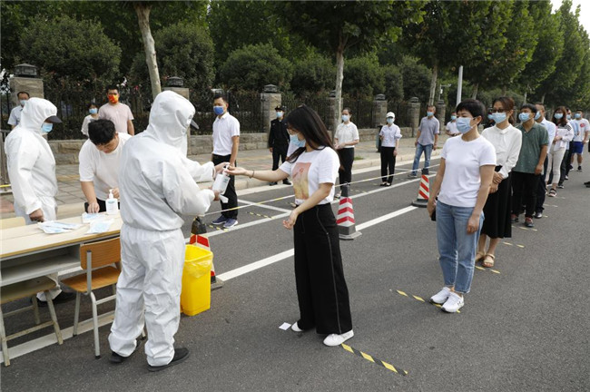 演練的主要目的是按照“早發(fā)現(xiàn)、早報告、早隔離、早診斷、早治療”的防控原則,提高全校師生應(yīng)對疫情的防控意識和應(yīng)急處置水平。演練針對近期學(xué)生返校學(xué)習(xí)和生活實際,由老師扮演學(xué)生,按照既定程序進行了南大門學(xué)生返校報到、學(xué)生餐廳就餐、學(xué)生宿舍、體溫異常應(yīng)急處置等場景演練活動。各專項工作組針對演練中發(fā)現(xiàn)的問題現(xiàn)場落實整改措施。整個演練過程緊張有序,各個環(huán)節(jié)配合密切,全面檢驗了應(yīng)急指揮和組織協(xié)調(diào)能力。