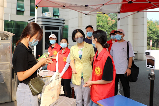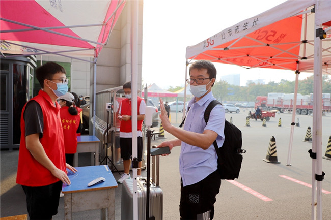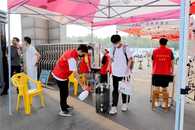 為迎接第一批學(xué)生安全有序返校,信陽農(nóng)林學(xué)院安排志愿者在南大門核驗返校學(xué)生身份、健康碼、行程碼、核酸檢測證明,并進(jìn)行體溫檢測、行李消殺等入校程序;學(xué)校租用校內(nèi)擺渡車,免費幫學(xué)生托運行李。從學(xué)校大門交通指引、人工通道,到校內(nèi)擺渡車接駁點、宿舍接待處,各部門工作人員、志愿者們都堅守在各自的工作崗位上,各項工作開展井然有序。