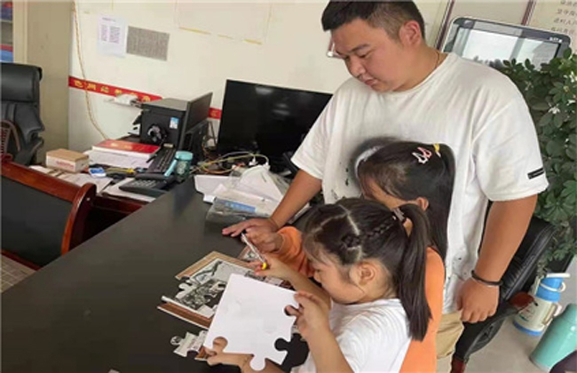 與此同時(shí),實(shí)踐隊(duì)員胡續(xù)洋同學(xué)帶領(lǐng)助農(nóng)班子成員的孩子們進(jìn)行黨史拼圖活動(dòng),通過1949年10月1日開國(guó)大典、1949年9月中國(guó)人民政治協(xié)商會(huì)議第一屆全體會(huì)議、1949年2月3日“三大戰(zhàn)役”凱旋、1937年9月25日平型關(guān)大捷、1936年10月22日紅軍三大主力會(huì)師、1919年5月4日“五四運(yùn)動(dòng)”等六幅拼圖,向小朋友們講述歷史故事,借由生動(dòng)的拼圖激發(fā)孩子們的學(xué)習(xí)興趣,紅色教育從小做起!