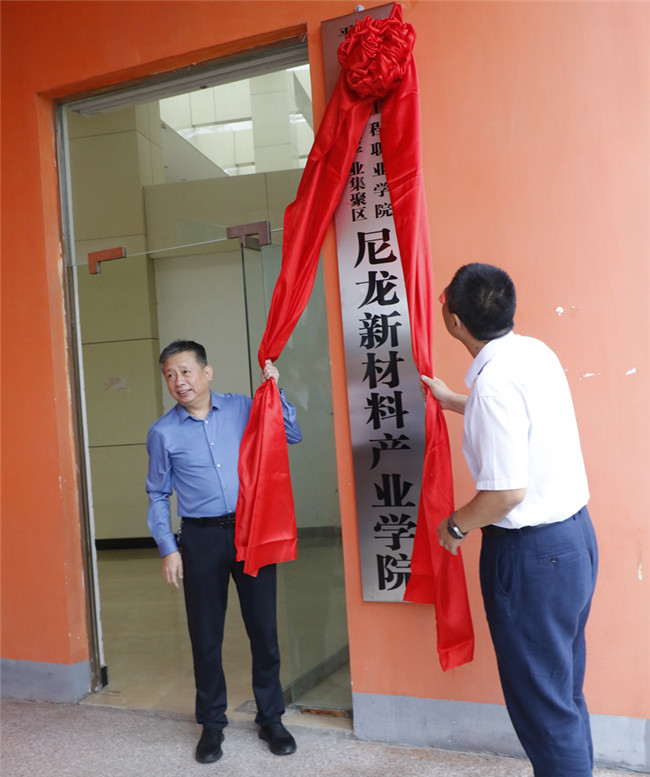 邱紅標和李明共同為尼龍新材料產業(yè)學院進行了揭牌。鄭海金和李鵬鵬分別代表雙方致辭。