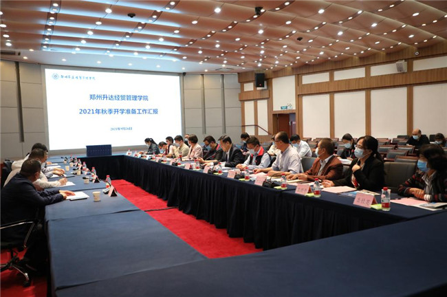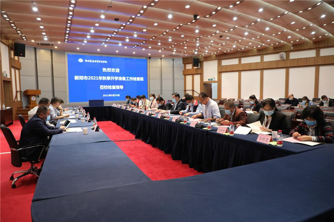 中新河南網9月27日電(趙建華 邵帥)9月26日上午,新鄭市教育園區(qū)管委會招商引資局局長張春旺,新鄭市衛(wèi)健委分包學校負責人趙耀輝、趙振偉、新鄭市市場監(jiān)管局副所長范偉強、新鄭市教育防控部第二督查組組長郭建偉、龍湖鎮(zhèn)小喬村黨支部書記趙留喜一行6人,蒞校檢查指導鄭州升達經貿管理學院2021年秋季學期開學準備工作。校領導王新奇、郭愛先、張金安、張其武及各工作專班組長、相關工作人員參加了匯報會。匯報會由校辦主任朱永恒主持。