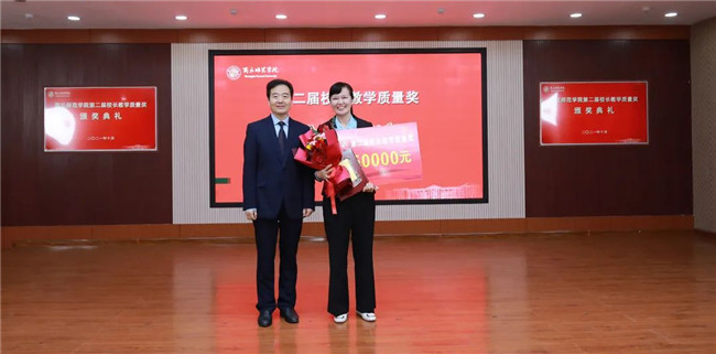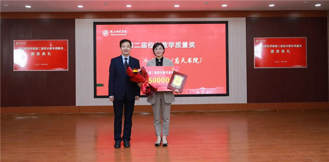 陳向煒與校長教學(xué)質(zhì)量獎獲得者李靜頒獎合影