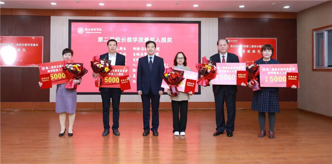 2021年的第二屆校長教學(xué)質(zhì)量獎,在總結(jié)首屆經(jīng)驗的基礎(chǔ)上,創(chuàng)新評審方法、嚴(yán)格評選標(biāo)準(zhǔn)、規(guī)范工作程序。歷經(jīng)單位推薦、資格審查、學(xué)校初評、學(xué)校終評、審批公示等5大環(huán)節(jié),耗時4個多月。最終,荊天、楊靜兩位教師成績優(yōu)異,再次入選“校長教學(xué)質(zhì)量獎”,從而榮獲“校長教學(xué)杰出貢獻(xiàn)獎”,每人榮獲獎金6萬元。劉培培、李靜、鄒琨、孟喜華等4位教師獲得“第二屆校長教學(xué)質(zhì)量獎”,每人榮獲獎金5萬元。