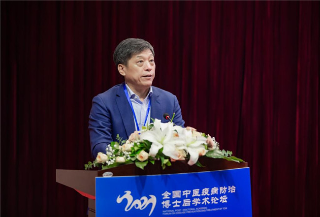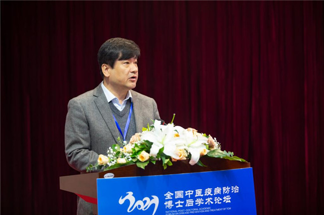 國醫(yī)大師張磊教授、中國博士后科學(xué)基金會博士后基金管理處處長陳穎、河南省人力資源和社會保障廳二級巡視員郝銀、河南省衛(wèi)生健康委員會二級巡視員張健鋒,河南中醫(yī)藥大學(xué)校長許二平、校黨委副書記李小芳等出席了論壇開幕式。中國工程院王琦院士、首都醫(yī)科大學(xué)附屬北京中醫(yī)醫(yī)院劉清泉院長、河南中醫(yī)藥大學(xué)第一附屬醫(yī)院李素云教授、寧夏醫(yī)科大學(xué)朱向東教授等專家分別作主旨報告。來自全國中醫(yī)疫病防治領(lǐng)域的知名學(xué)者、同行專家、青年學(xué)者以及優(yōu)秀博士后代表等近百人參加了此次論壇。開幕式由李小芳主持。