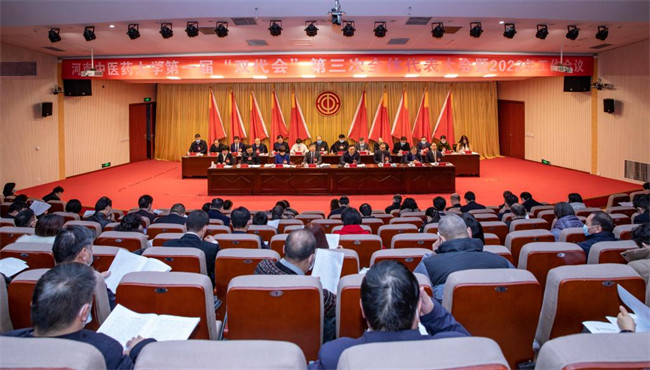 會上,校長許二平作了題為《守正創(chuàng)新?lián)斪鳛?奮力開創(chuàng)學校高質(zhì)量發(fā)展新局面》的工作報告。許二平表示,2021年是中國共產(chǎn)黨成立100周年,學校按照省委、省政府各項決策部署,團結(jié)帶領全校師生把黨史學習教育與攻堅克難、干事創(chuàng)業(yè)結(jié)合起來,有力推動了各項事業(yè)高質(zhì)量發(fā)展。一是全面深化黨建引領,匯聚發(fā)展合力。學校黨委堅持以首位意識推進政治建設,深入開展學習教育,筑牢守好意識形態(tài)陣地,不斷夯實基層黨組織和干部隊伍建設,多措并舉做好統(tǒng)一戰(zhàn)線工作,扎實推進黨風廉政建設和作風建設,全面落實新時代黨的建設總要求,不斷提升黨建工作質(zhì)量,為推動學校各項事業(yè)高質(zhì)量發(fā)展提供堅強引領和保障。二是堅決提高政治站位,礪煉發(fā)展能力。學校黨委堅持發(fā)揮領導班子核心作用,講政治、顧大局,把對黨的絕對忠誠落實到敢于擔難擔險和服務發(fā)展大局中:以書院制改革為抓手推動落實根本任務、科學制定“十四五”發(fā)展規(guī)劃和2035年遠景目標、站位“高”,行動“快”,責任“實”,工作“細”,持續(xù)抓牢疫情防控、凝聚力量抗汛救災,經(jīng)受住了突發(fā)事件對學校治理體系治理能力的檢驗,有效銜接鞏固脫貧攻堅成果與助力鄉(xiāng)村振興,取得了顯著成績。三是準確把握形勢任務,爭取發(fā)展主動。學校聚焦貫徹落實黨中央和省委的新部署新要求,準確把握新形勢新任務,積極謀劃、主動融入新發(fā)展格局。通過學習、宣傳、調(diào)研等舉措在全校迅速掀起學習貫徹熱潮,探索傳承創(chuàng)新發(fā)展路徑;通過積極布局人才培養(yǎng)、學科、科研評價等體系的重構(gòu),打造中醫(yī)藥服務和文化傳承新高地,助推中醫(yī)藥強省建設。積極融入創(chuàng)新驅(qū)動戰(zhàn)略,服務現(xiàn)代化河南建設,進一步把思想、行動統(tǒng)一到省委的部署要求上來,緊跟省委部署、明確目標定位、積極爭創(chuàng)“雙一流”,在不斷強化創(chuàng)新引領、扛牢立德樹人根本任務、推動中醫(yī)藥傳承創(chuàng)新發(fā)展、提升全方位全周期健康服務水平、全面啟動“雙一流”創(chuàng)建工作等方面集中發(fā)力,成效顯著。四是扎實推進內(nèi)涵建設,保持發(fā)展勢頭。2021年,學校堅定走好內(nèi)涵式發(fā)展道路,有力推動了學校轉(zhuǎn)型發(fā)展進入新階段:人才培養(yǎng)質(zhì)量有新提升、學科發(fā)展水平持續(xù)提高、科學研究取得新突破、師資隊伍建設不斷加強、社會服務體系更加完善、國際合作交流合作深入拓展、治理能力和基礎能力穩(wěn)步提升。