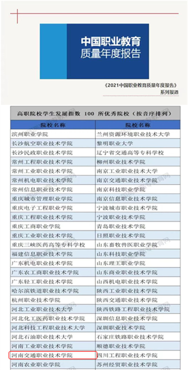 該報告由中國教育科學(xué)研究院、全國職業(yè)高等院校校長聯(lián)席會議編制,分為高等職業(yè)教育篇和中等職業(yè)教育篇,高等職業(yè)教育篇從服務(wù)貢獻、學(xué)生發(fā)展、教育教學(xué)、政府責任和國際合作五個質(zhì)量維度,向社會展示2020年中國高等職業(yè)教育的發(fā)展面貌。為了引導(dǎo)職業(yè)院校高度重視學(xué)生發(fā)展,報告首次發(fā)布全國高職院校學(xué)生發(fā)展指數(shù),從學(xué)生發(fā)展情況、教育教學(xué)情況、社會服務(wù)情況、實踐教學(xué)情況等維度構(gòu)建學(xué)生發(fā)展指數(shù),在各校提交的質(zhì)量年報數(shù)據(jù)基礎(chǔ)上,結(jié)合狀態(tài)數(shù)據(jù)平臺數(shù)據(jù),采用因子分析模型確定指標權(quán)重,遴選出100所高職院校學(xué)生發(fā)展指數(shù)優(yōu)秀院校。