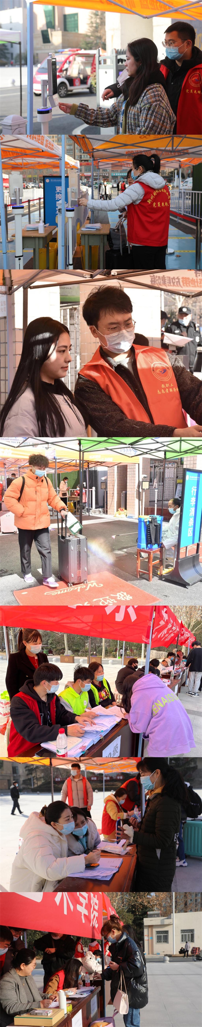 返校當(dāng)天,全院上下通力合作,相關(guān)工作人員提前到崗,各司其職。部分志愿者們引導(dǎo)學(xué)生查驗(yàn)身份、核對雙碼、測溫、消殺、領(lǐng)取健康承諾書、查驗(yàn)核酸報(bào)告等入校前流程,確保學(xué)生安全高效入校。部分黨員、教師和學(xué)生志愿者不辭辛苦,為返校學(xué)生搬運(yùn)行李物品,暖心護(hù)航。在大家的共同努力下,確保了返校工作的順利完成。