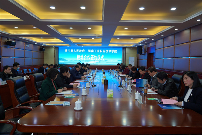 河南工業(yè)職業(yè)技術(shù)學(xué)院黨委書記溫道軍代表學(xué)校向淅川縣委、縣政府和各級(jí)領(lǐng)導(dǎo)的關(guān)心、支持表示衷心的感謝,并介紹了學(xué)校的發(fā)展歷史、辦學(xué)特色和發(fā)展成就。溫道軍在講話中指出,校地雙方在推動(dòng)區(qū)域發(fā)展、產(chǎn)業(yè)升級(jí)、科技創(chuàng)新、生態(tài)監(jiān)測(cè)、鄉(xiāng)村振興、職業(yè)教育發(fā)展等領(lǐng)域開展深度合作,有助于推動(dòng)校地“產(chǎn)、學(xué)、研、轉(zhuǎn)、創(chuàng)”融合發(fā)展,為淅川經(jīng)濟(jì)社會(huì)高質(zhì)量發(fā)展提供智力支持和人才支撐。下一步,學(xué)校將認(rèn)真落實(shí)戰(zhàn)略合作協(xié)議內(nèi)容,積極主動(dòng)與淅川縣委、縣政府和相關(guān)單位溝通交流,不斷推動(dòng)校地合作走向深入,為打造“雙九戰(zhàn)略”新淅川貢獻(xiàn)職教力量。