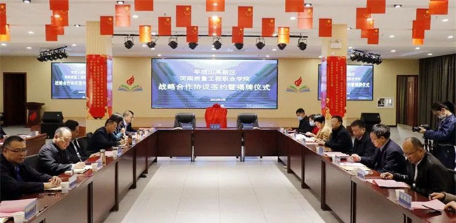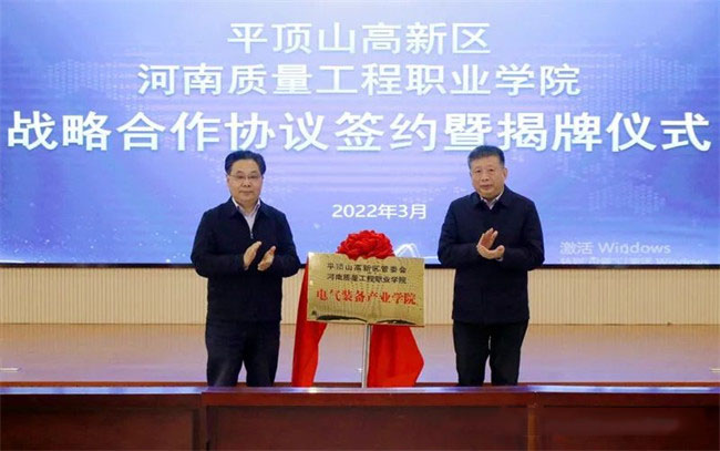 徐宗華在致辭中指出,電氣裝備產(chǎn)業(yè)學(xué)院的成立是平頂山高新區(qū)和河南質(zhì)量工程職業(yè)學(xué)院貫徹全國職業(yè)教育大會精神的迅速行動和有力舉措;是推動高等職業(yè)教育與地方經(jīng)濟(jì)社會發(fā)展深度融合協(xié)同發(fā)展的積極探索和生動實踐;是政府、企業(yè)、高校三位一體互動發(fā)展的新路徑。是開啟高新區(qū)和學(xué)院攜手并進(jìn),高質(zhì)量發(fā)展的新征程。雙方以聯(lián)合開展人才培養(yǎng)、科學(xué)研究、社會服務(wù)和文化傳承為重點,在更深層次、更寬領(lǐng)域、更高水平持續(xù)深化合作、攜手共進(jìn)。我院將以最大誠意、最好政策、最優(yōu)資源,為產(chǎn)業(yè)學(xué)院發(fā)展創(chuàng)造良好條件,提供大力支持。在共同努力下,雙方的合作之路必將越走越寬廣,合作的內(nèi)涵必將越來越豐富,融合發(fā)展必將提升到新的高度,實現(xiàn)雙方合作共贏、共同發(fā)展,為推動我市高質(zhì)量轉(zhuǎn)型發(fā)展貢獻(xiàn)力量。