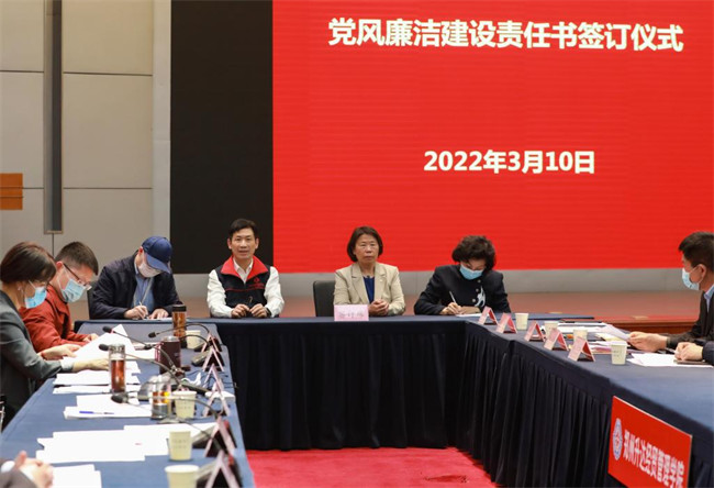 校領(lǐng)導(dǎo)雷霆、郭愛先和張金安分別與班子成員代表、行政部門負(fù)責(zé)人代表、教學(xué)單位黨政負(fù)責(zé)人代表簽訂了《黨風(fēng)廉政建設(shè)責(zé)任書》。