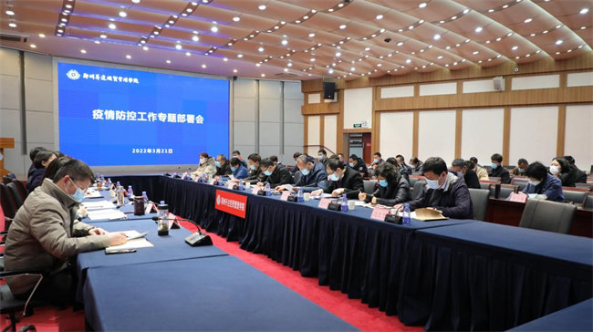 會(huì)上,疫情防控指揮部副指揮長(zhǎng)、校黨委副書(shū)記、副校長(zhǎng)、工會(huì)主席張金安就認(rèn)真貫徹落實(shí)黨中央、國(guó)務(wù)院、省市各級(jí)疫情防控會(huì)議精神,從八個(gè)方面對(duì)學(xué)校疫情防控工作進(jìn)行了具體安排部署:一是要召開(kāi)兩個(gè)專(zhuān)題會(huì)議。二是要嚴(yán)把學(xué)校大門(mén)關(guān)。要按照“五個(gè)一律”的要求做好門(mén)衛(wèi)管理,非本校人員一律不準(zhǔn)入校。嚴(yán)格執(zhí)行入校身份核驗(yàn)、刷兩碼、測(cè)體溫、信息登記、查驗(yàn)48小時(shí)內(nèi)核酸檢驗(yàn)證明等措施。嚴(yán)格落實(shí)快遞、物流等消毒消殺,引導(dǎo)廣大師生暫停網(wǎng)絡(luò)購(gòu)物、訂購(gòu)?fù)赓u(mài)等行為。三是要加強(qiáng)學(xué)生管理。原則上學(xué)生不允許請(qǐng)假外出,如因身體原因或特殊情況需要出校,要嚴(yán)格履行審批手續(xù),嚴(yán)禁翻越圍墻出入。四是要加強(qiáng)教職工管理。教職工原則上不允許離開(kāi)校園和鄭州,不乘坐公共交通,實(shí)行“兩點(diǎn)一線(xiàn)”閉環(huán)管理,跨市流動(dòng)需請(qǐng)假報(bào)批。本人及共同居住人員有離鄭旅居史的,要主動(dòng)進(jìn)行報(bào)備,做到三天兩檢。省外返鄭人員居家健康觀察一周,一周內(nèi)不聚集、不聚餐,并進(jìn)行一周三檢。五是要暫停校內(nèi)聚集性活動(dòng),暫停外出培訓(xùn)交流,杜絕聚餐、聚會(huì)等活動(dòng)。六是要做好日?qǐng)?bào)告、零報(bào)告制度。各單位要做好晨、午、晚檢和重點(diǎn)人群的行程軌跡及健康狀況排查,加強(qiáng)對(duì)請(qǐng)假、校外居住等重點(diǎn)人員管理,強(qiáng)化重點(diǎn)場(chǎng)所、重點(diǎn)部位的消毒消殺。七是要加強(qiáng)人文關(guān)懷。做好心理健康教育,引導(dǎo)廣大師生員工做自己健康管理的第一責(zé)任人。八是要完善組織架構(gòu)。加強(qiáng)隊(duì)伍力量,加大檢查力度,對(duì)不遵守學(xué)校防疫規(guī)定,不配合落實(shí)相關(guān)管理措施等行為加大督導(dǎo)檢查力度,對(duì)相關(guān)違規(guī)人員進(jìn)行處理。