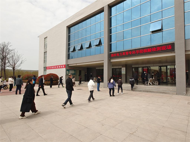 鄭州電力高專領導實地查看采樣流程、秩序維護、防控措施落實等情況,詳細了解采樣點區(qū)域劃分、現(xiàn)場組織、采樣進度、物資配備等情況,對參與核酸檢測醫(yī)務人員等工作人員的辛苦付出表示誠摯感謝和敬意。