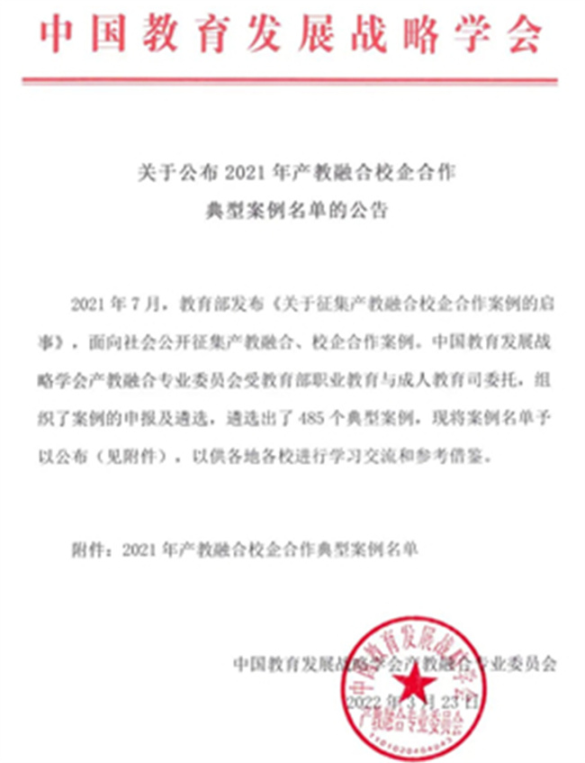 產(chǎn)教融合校企合作典型案例的成功入選是學(xué)校多年來持續(xù)深化產(chǎn)教融合、校企合作的優(yōu)秀成果檢驗,學(xué)校將進一步充分挖掘產(chǎn)教融合典型案例的亮點特色,真正將校企合作工作做深、做實,切實促進學(xué)校教育教學(xué)改革,共同提升人才培養(yǎng)質(zhì)量。