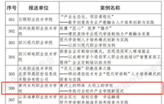 黃河水利職業(yè)技術(shù)學(xué)院入選教育部產(chǎn)教融合校企合作典型案例