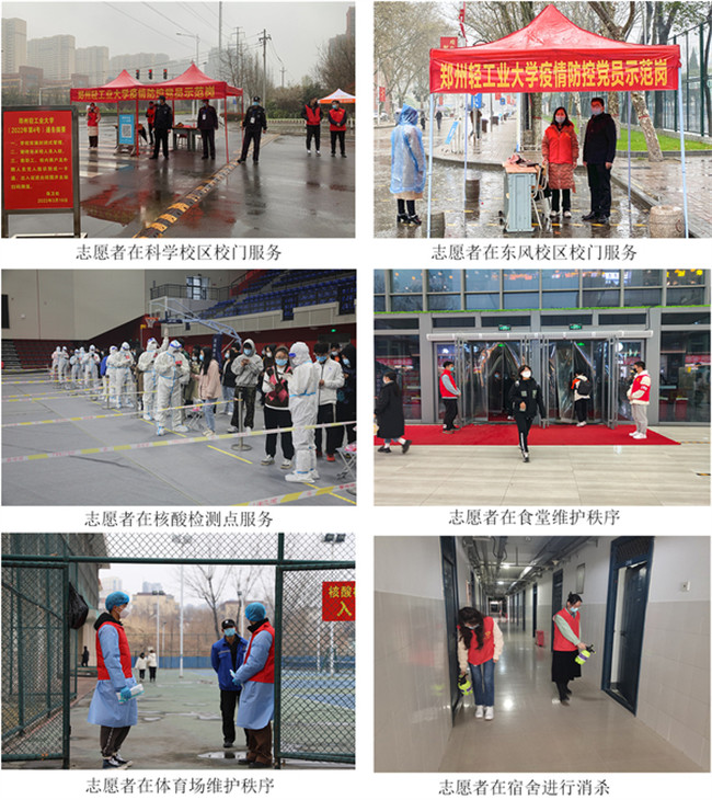 本次疫情防控志愿服務(wù)本著“個(gè)人自愿申請(qǐng)、黨員干部帶頭”的原則,在學(xué)校疫情防控工作領(lǐng)導(dǎo)小組安排指導(dǎo)下開(kāi)展了多項(xiàng)活動(dòng),志愿者們結(jié)合自身實(shí)際,主動(dòng)參與防控宣傳,線上利用學(xué)校官方媒體平臺(tái)宣傳防控知識(shí),線下在服務(wù)過(guò)程中宣傳防控措施和防控要求,傳播疫情防控社會(huì)正能量。教職工志愿者落實(shí)服務(wù)下沉一線要求,積極參與校園管理,服務(wù)在核酸檢測(cè)點(diǎn)的教職工志愿者耐心細(xì)致,積極維護(hù)現(xiàn)場(chǎng)秩序,提醒檢測(cè)師生做好個(gè)人防護(hù);服務(wù)在兩校區(qū)大門(mén)的教職工志愿者嚴(yán)把校門(mén)關(guān),協(xié)助安保人員實(shí)施校園封閉式管理工作,對(duì)進(jìn)出校門(mén)的人員、車(chē)輛進(jìn)行細(xì)致查驗(yàn),守穩(wěn)學(xué)校疫情防控第一道防線。各學(xué)院積極響應(yīng),動(dòng)員學(xué)生志愿者在食堂、操場(chǎng)、宿舍等區(qū)域服務(wù)。食堂的志愿者們積極做好洗手消毒指引、購(gòu)餐引導(dǎo)、維護(hù)秩序等工作,為師生們提供良好的就餐秩序;宿舍的志愿者們協(xié)助宿管老師對(duì)宿舍走廊等公共區(qū)域進(jìn)行消殺,為同學(xué)們營(yíng)造出健康舒適的住宿環(huán)境;校園巡查志愿者在校園公共區(qū)域?qū)Σ灰?guī)范行為進(jìn)行及時(shí)勸阻和引導(dǎo),提醒進(jìn)入教學(xué)樓、體育場(chǎng)等區(qū)域人員做好防疫措施并發(fā)放口罩。全體師生員工層層壓實(shí)校園疫情防控責(zé)任,時(shí)刻繃緊思想之弦,確保校園不留安全死角。