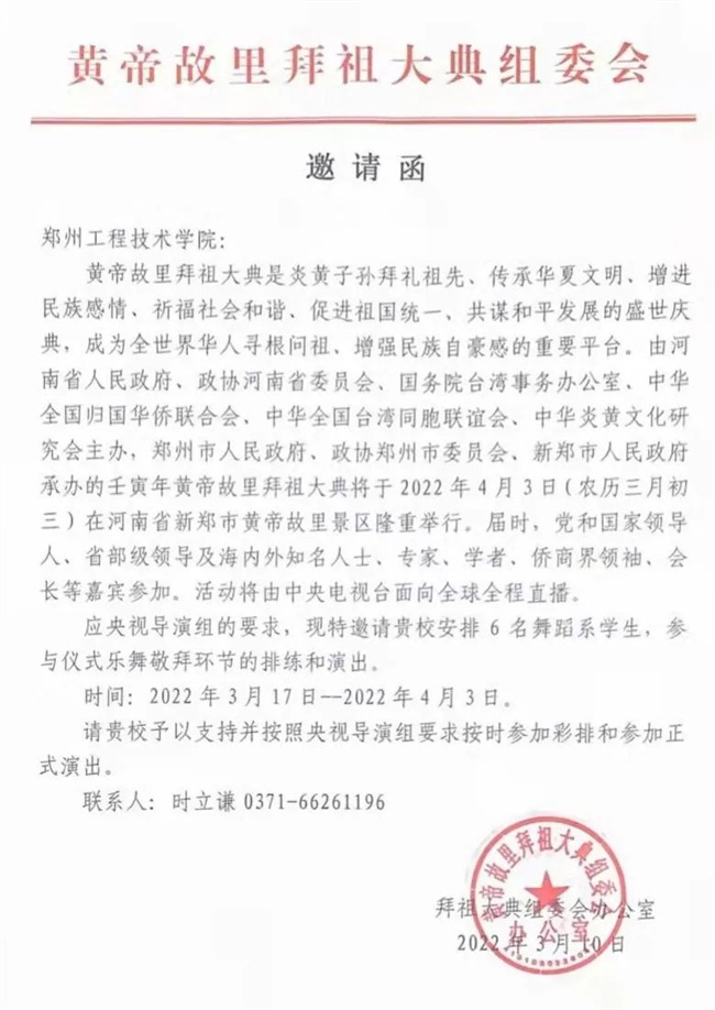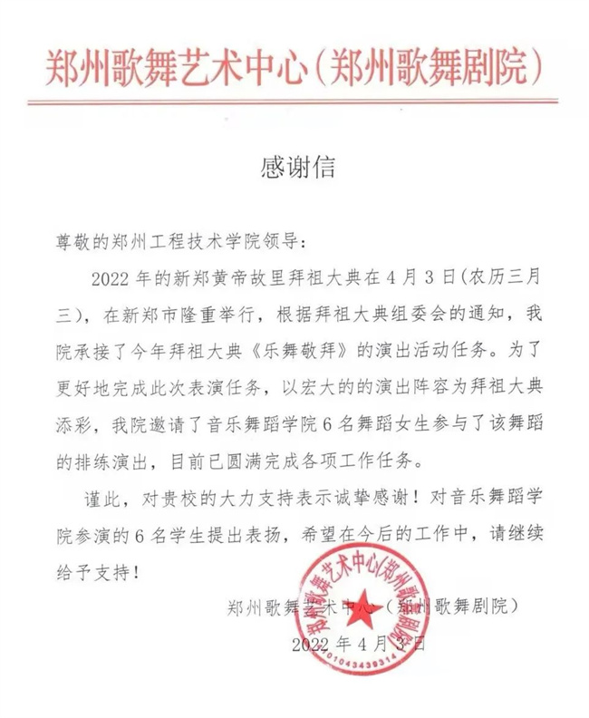 鄭州工程技術(shù)學(xué)院音樂舞蹈學(xué)院學(xué)生參加壬寅年黃帝故里拜祖大典