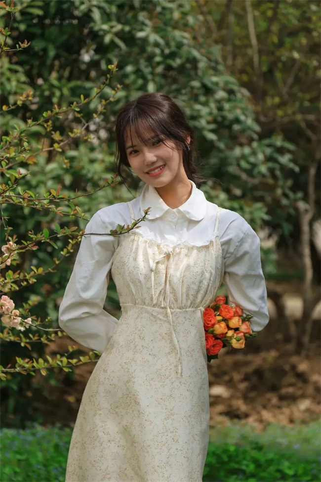 小周有話說 : 奶黃色的碎花裙賊有溫柔感,春日花朵的點綴,少女的甜美一秒get