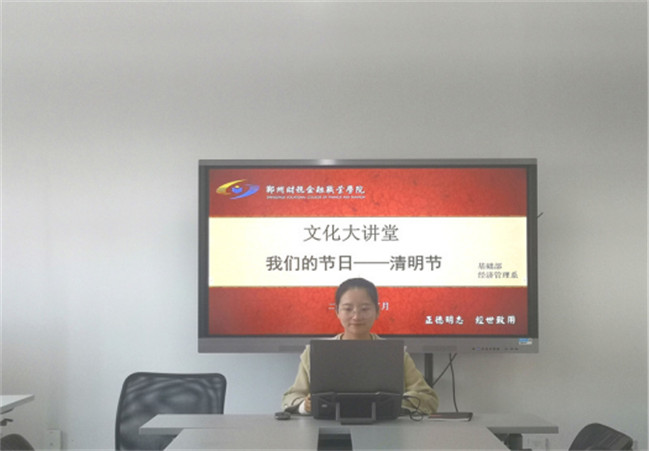 活動一:文化大講堂。為弘揚中華優(yōu)秀傳統(tǒng)文化,踐行社會主義核心價值觀,著力打造書香人文校園,3月29日下午,基礎(chǔ)部和經(jīng)濟管理系聯(lián)合以釘釘群線上直播的形式舉辦了第一期清明節(jié)文化大講堂活動。本次文化大講堂由基礎(chǔ)部王雨晴老師主講,潘曉景老師主持,經(jīng)濟管理系21級學生參加。王老師從清明節(jié)概述、清明習俗、緬懷先烈、領(lǐng)悟精神等四部分與學生進行了分享,使同學們從中學習了清明節(jié)的文化,感悟中華傳統(tǒng)節(jié)日的內(nèi)涵和魅力,并從革命先烈的事跡中傳承紅色基因,延續(xù)精神血脈,增進愛國情感。