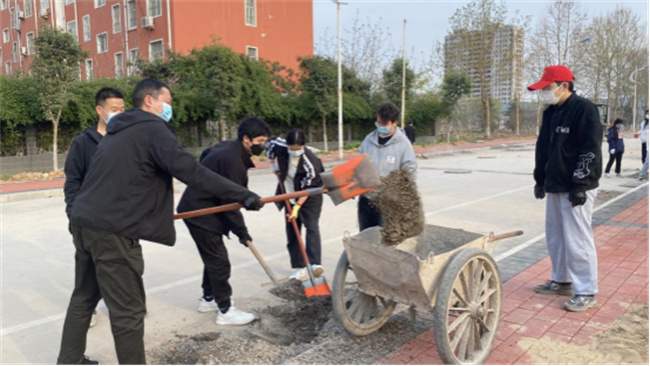 受疫情影響,校園道路改造工程暫停,地磚、沙石堆積路面導(dǎo)致部分道路堵塞。為方便師生通行,排除安全隱患,土木建筑工程學(xué)院組織師生利用專業(yè)技能,對(duì)南校區(qū)操場(chǎng)附近和主教學(xué)樓東側(cè)兩處路面分別進(jìn)行了拆除重鋪和路面清理,恢復(fù)了暢通潔凈的安全道路。