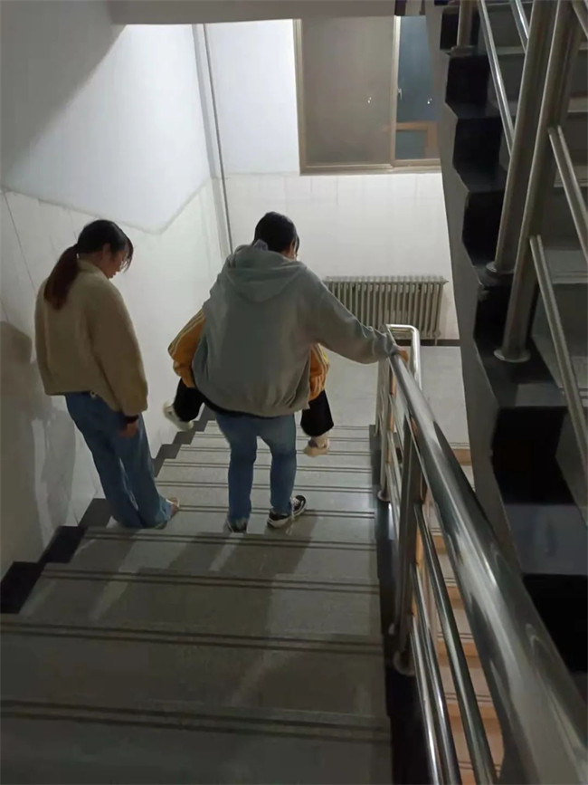 “導(dǎo)員,我下半身動(dòng)不了了!”,4月10日早上7點(diǎn),建筑工程學(xué)院一名學(xué)生向輔導(dǎo)員緊急求助。輔導(dǎo)員楊靜老師接到電話后,第一時(shí)間出現(xiàn)在學(xué)生宿舍?吹綄W(xué)生半癱在床鋪上,雙腿沒有知覺,楊靜老師立刻叫來(lái)班長(zhǎng)和宿管,背起學(xué)生送往健康中心。在此過程中,宿管和班長(zhǎng)輪流背著學(xué)生,楊靜老師一直堅(jiān)持在身后托著學(xué)生,謹(jǐn)防學(xué)生掉落。到達(dá)健康中心后,經(jīng)學(xué)生描述和校醫(yī)初步診斷為“缺鉀癥”。得知情況后,楊老師立刻與學(xué)生家長(zhǎng)取得聯(lián)系,在醫(yī)生和家長(zhǎng)的囑咐后,楊靜老師照顧學(xué)生服完藥,注意休息,學(xué)生的雙腿慢慢恢復(fù)。事后學(xué)生感動(dòng)的說:“楊老師第一時(shí)間能到我宿舍并將我送至校醫(yī)院,讓我在慌張中慢慢安心下來(lái),在他的陪伴下,我緊張的情緒得到了有效的緩解,并讓我感到非常的溫暖”。