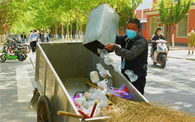 校園封閉管理初期,校園勞動(dòng)教育工作按下暫停鍵,校園衛(wèi)生維護(hù)壓力增大。關(guān)鍵時(shí)刻學(xué)務(wù)處勞動(dòng)衛(wèi)生科變通工作方法,帶領(lǐng)140名勞動(dòng)小組長(zhǎng)轉(zhuǎn)換角色,扛起掃把,勇于承擔(dān)管控期間校園衛(wèi)生,他們成為校園疫情防控重要的支撐力量。此外,家住寶相寺的清潔工胡子亮、胡大軍收到學(xué)校管控的消息,主動(dòng)請(qǐng)纓,來(lái)不及整理行裝,天不亮即趕往學(xué)校,后續(xù)委托家人把基本生活物品托遞到學(xué)校。“學(xué)校封閉期間,更要?jiǎng)?chuàng)造一個(gè)良好的生活環(huán)境,無(wú)非就是多吃點(diǎn)苦,沒什么大不了的。”清潔工胡子亮一邊傾倒著垃圾,一邊說道。他們是達(dá)園最可愛的人,他們始終堅(jiān)守在校園保潔的第一線。
