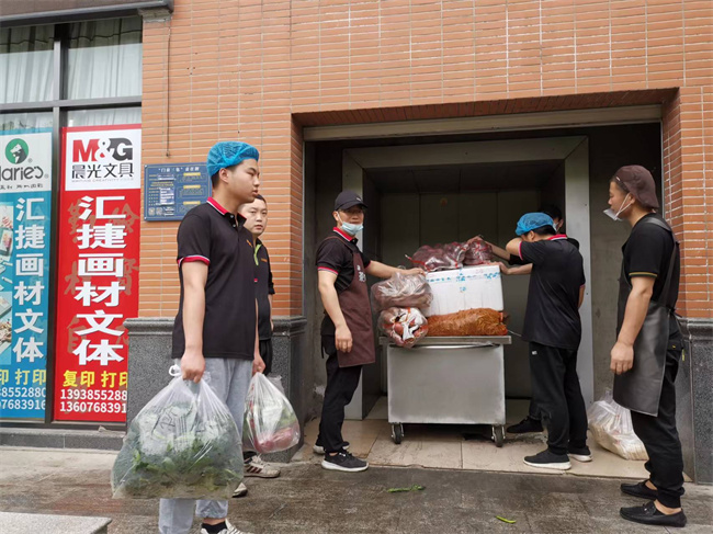 溫馨園餐廳經理郝帥領及炊工馮東偉在封控期間堅每天持凌晨4點在防疫卡點將糧油、蔬菜、面條及生活必需品轉運到學校,確保校內食堂原材料正常供應,用實際行動來守護升達的和諧穩(wěn)定。山水園餐廳楊玉科接到組織返校炊工到崗的通知后,連夜親自開車到龍湖周邊社區(qū)接年齡較大的保潔人員,為保潔人員安置臨時住宿點;細心的他還專門采購消毒液、酒精為炊工臨時住宿點消毒、通風。