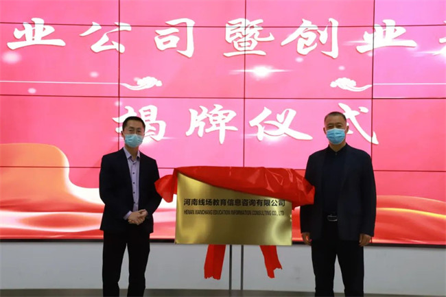 緊接著,黨委書記張震和大數(shù)據(jù)學(xué)院執(zhí)行院長張粵磊為河南線場教育信息咨詢有限公司揭牌;校長王本亮和熊威總經(jīng)理為數(shù)據(jù)產(chǎn)業(yè)服務(wù)基地揭牌;副校長谷獻(xiàn)暉和大數(shù)據(jù)學(xué)院教學(xué)副院長馬妮娜為產(chǎn)教融合創(chuàng)新創(chuàng)業(yè)示范基地揭牌。