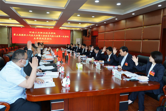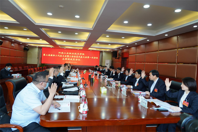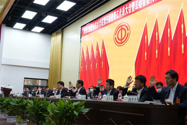 河南工業(yè)職業(yè)技術(shù)學(xué)院第三屆教職工暨工會(huì)會(huì)員代表大會(huì)第一次會(huì)議完成各項(xiàng)議程,在激昂的《國(guó)際歌》中勝利閉幕。