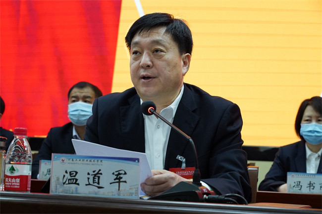 溫道軍發(fā)表重要講話。溫書(shū)記指出,本次會(huì)議討論了校長(zhǎng)王偉所作的行政工作報(bào)告、工會(huì)主席屈保中所作的工會(huì)工作報(bào)告等五個(gè)報(bào)告,選舉產(chǎn)生第三屆工會(huì)委員會(huì)、工會(huì)經(jīng)費(fèi)審查委員會(huì)委員,通過(guò)第三屆工會(huì)女工委員會(huì)及教代會(huì)六個(gè)專(zhuān)門(mén)委員會(huì)成員名單,與會(huì)代表認(rèn)真履行代表的神圣職責(zé),充分使用民主權(quán)利,緊緊圍繞推進(jìn)學(xué)校高質(zhì)量發(fā)展主題和師生員工共同關(guān)心的問(wèn)題,提出了許多建設(shè)性的意見(jiàn)和建議。就貫徹落實(shí)好會(huì)議精神,做好2022年各項(xiàng)工作,溫書(shū)記提出四點(diǎn)希望。一是提高站位,凝聚共識(shí),在堅(jiān)持黨的領(lǐng)導(dǎo)中找準(zhǔn)努力方向。五年來(lái),學(xué)校工作卓有成效,事業(yè)發(fā)展碩果累累,一切成績(jī)的取得,根本在于黨的堅(jiān)強(qiáng)領(lǐng)導(dǎo),在于我們不忘初心。要站穩(wěn)政治立場(chǎng),把堅(jiān)持黨的全面領(lǐng)導(dǎo)作為最根本的政治原則,夯實(shí)思想根基,進(jìn)一步加強(qiáng)理論武裝。二是匯集力量,開(kāi)拓進(jìn)取,在圍繞中心服務(wù)大局中履職盡責(zé)。各位代表要發(fā)揮好排頭兵、先鋒隊(duì)的作用,爭(zhēng)當(dāng)育人先鋒、教學(xué)先進(jìn)、科研尖兵、服務(wù)表率,凡事以學(xué)校大局為重,以學(xué)校整體利益為重,帶動(dòng)廣大師生齊心協(xié)力推動(dòng)學(xué)校發(fā)展。三是凝聚人心,增進(jìn)團(tuán)結(jié),在不懈奮斗中貢獻(xiàn)智慧力量。要擦亮團(tuán)結(jié)底色,全校上下要堅(jiān)定一條心、擰成一股繩、上下一盤(pán)棋,人人為發(fā)展盡力、個(gè)個(gè)為責(zé)任擔(dān)當(dāng)。要鼓起拼搏的制勝法寶,我們每位教職工都承載著學(xué)校發(fā)展的光榮和夢(mèng)想,都要立足崗位,腳踏實(shí)地,為夢(mèng)想不舍晝夜,用拼搏奮斗定義時(shí)光,要吹響奮斗前行的號(hào)角,繼續(xù)拉高標(biāo)桿,只爭(zhēng)朝夕,勇于前行。四要聚精會(huì)神,善作善成,在加強(qiáng)自身建設(shè)中全面提升過(guò)硬本領(lǐng)。各位代表要切實(shí)提高自身履職能力,充分展現(xiàn)一線擔(dān)當(dāng)、一線作為,努力做到強(qiáng)擔(dān)當(dāng)、提素質(zhì)、樹(shù)形象。要強(qiáng)化理論學(xué)習(xí),提高理論素質(zhì),全面提升政治把握能力、調(diào)查研究能力、聯(lián)系群眾能力、合作共事能力。要堅(jiān)持守正創(chuàng)新,不斷完善“雙代會(huì)”的制度體系,讓履職更有方法、質(zhì)效更有保障。全校師生共同并肩奮斗,堅(jiān)定前行,勇攀高峰,推進(jìn)學(xué)校高質(zhì)量跨越發(fā)展,以更加優(yōu)異的成績(jī)迎接黨的二十大勝利召開(kāi),為實(shí)現(xiàn)第二個(gè)百年奮斗目標(biāo)作出新的更大貢獻(xiàn)。