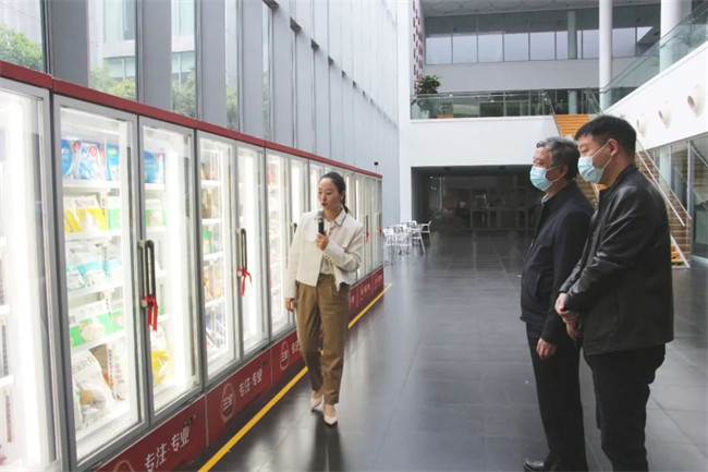 盧校長一行參觀生產(chǎn)車間,了解三全食品股份有限公司主要產(chǎn)品、發(fā)展歷程和科技創(chuàng)新的發(fā)展前景。