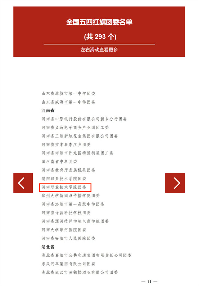 近年來(lái),河南職業(yè)技術(shù)學(xué)院團(tuán)委在校黨委與上級(jí)團(tuán)組織的正確領(lǐng)導(dǎo)和關(guān)心支持下,緊緊凝聚在黨的旗幟下,聽黨號(hào)令、跟黨奮斗,奮發(fā)改革、真抓實(shí)干,扎實(shí)穩(wěn)步推進(jìn)各項(xiàng)團(tuán)學(xué)工作,在思想引領(lǐng)、基層組織建設(shè)、社會(huì)實(shí)踐、校園文化、服務(wù)青年、創(chuàng)新創(chuàng)業(yè)等方面成績(jī)突出,有力提升了共青團(tuán)的組織力、引領(lǐng)力、服務(wù)力和服務(wù)大局的貢獻(xiàn)度。
