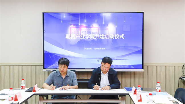 會(huì)議現(xiàn)場(chǎng),校企雙方簽訂了“校企共建期貨產(chǎn)業(yè)學(xué)院協(xié)議書(shū)”,并且雙方舉行了“河南省金融衍生品大學(xué)生實(shí)習(xí)實(shí)踐教育基地”“期貨產(chǎn)業(yè)學(xué)院”授牌儀式,并就人才培養(yǎng)與行業(yè)需求、校企合作形式、途徑、內(nèi)容等進(jìn)行了深入的溝通與交流,還就下一步合作計(jì)劃交換了意見(jiàn)。