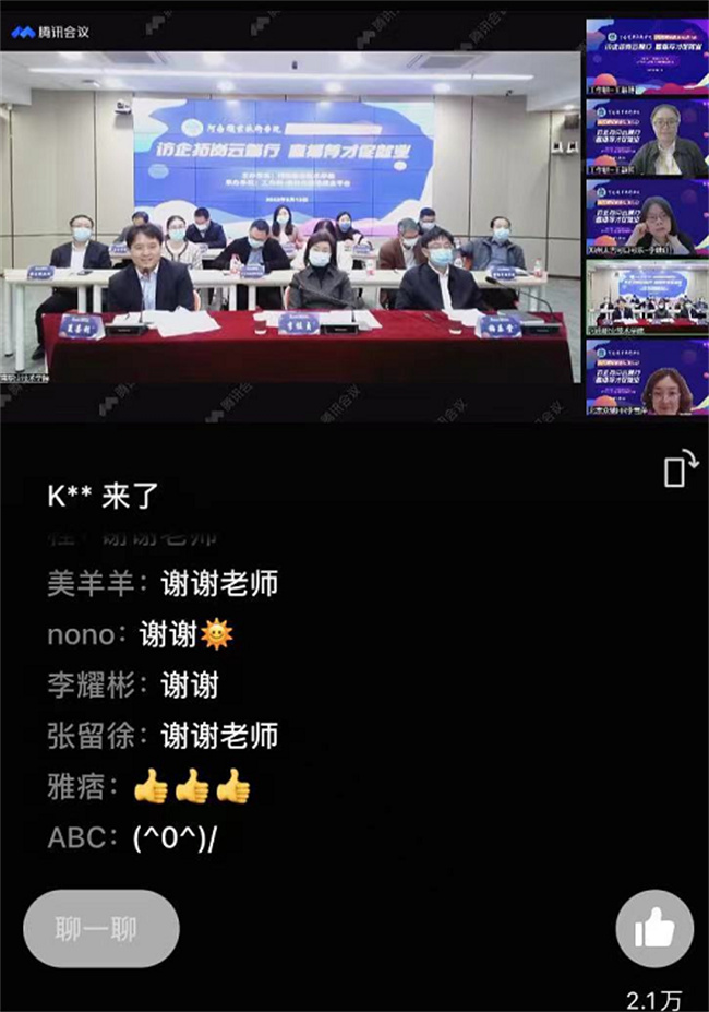 河南雙匯投資發(fā)展股份有限公司、正大集團(tuán)(河南區(qū))、鄭州德邦物流、舜宇集團(tuán)等10家行業(yè)龍頭企業(yè)分別介紹了企業(yè)發(fā)展現(xiàn)狀、人才需求情況,重點(diǎn)圍繞校企合作意向、對(duì)畢業(yè)生素質(zhì)和能力需求狀況、改進(jìn)和優(yōu)化人才培養(yǎng)機(jī)制等提出了建議。隨后,企業(yè)依次進(jìn)行了線上招聘宣講,與學(xué)生積極互動(dòng)。