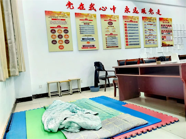 剛返校時,由于事發(fā)突然,很多老師沒帶換洗衣服生活必需品,在辦公室打地鋪,黨員活動室的椅子、教室的課桌都成了老師的臨時棲身地。“我睡沙發(fā),還不算冷!”接下來的日子,王廣源每天都有新感悟,尤其是看到李東方、宋冠宇、孔廣路、吳賽、牛家明、范云峰等男教師在完成自己的工作后,還抽空幫助女教師把一筐筐沉重的飯菜搬到樓上,干完活,還沒來得及吃飯,就累得坐在地上靠著墻睡著了……
