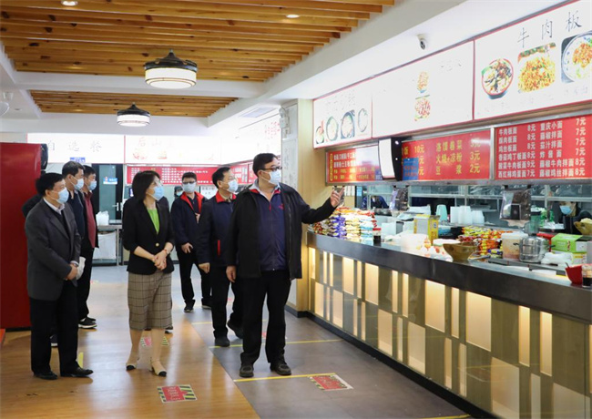 品鑒活動期間,校領導一行還走訪巡視了校內各家餐廳,對餐廳疫情防控、環(huán)境衛(wèi)生狀況、場所安全保衛(wèi)、員工個人衛(wèi)生等相關內容進行了認真檢查和仔細詢問。校執(zhí)行董事王新奇指導并要求進一步加強校園食品衛(wèi)生安全管理,為學校師生提供更好的用餐質量,確保師生吃上安全放心的食品,努力營造一個良好和諧的校園氛圍,促進學校飲食文化的健康發(fā)展。