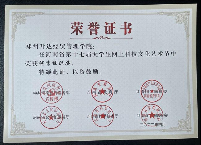 鄭州升達(dá)經(jīng)貿(mào)管理學(xué)院在河南省第十七屆大學(xué)生網(wǎng)上科技文化藝術(shù)節(jié)中喜獲佳績(jī)