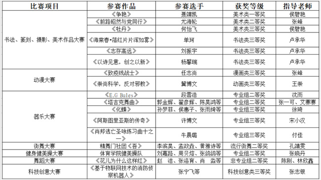 本屆大學(xué)生科技文化藝術(shù)節(jié)以網(wǎng)上選拔為主,自活動(dòng)啟動(dòng)以來(lái),鄭州升達(dá)經(jīng)貿(mào)管理學(xué)院高度重視,校團(tuán)委與二級(jí)學(xué)院通力合作、認(rèn)真籌備,做好參賽作品的選拔、排練、錄制等工作,全校各級(jí)團(tuán)組織和廣大青年學(xué)生積極參與,用富有思想性、時(shí)代性的藝術(shù)作品,為學(xué)校爭(zhēng)得了榮譽(yù)。