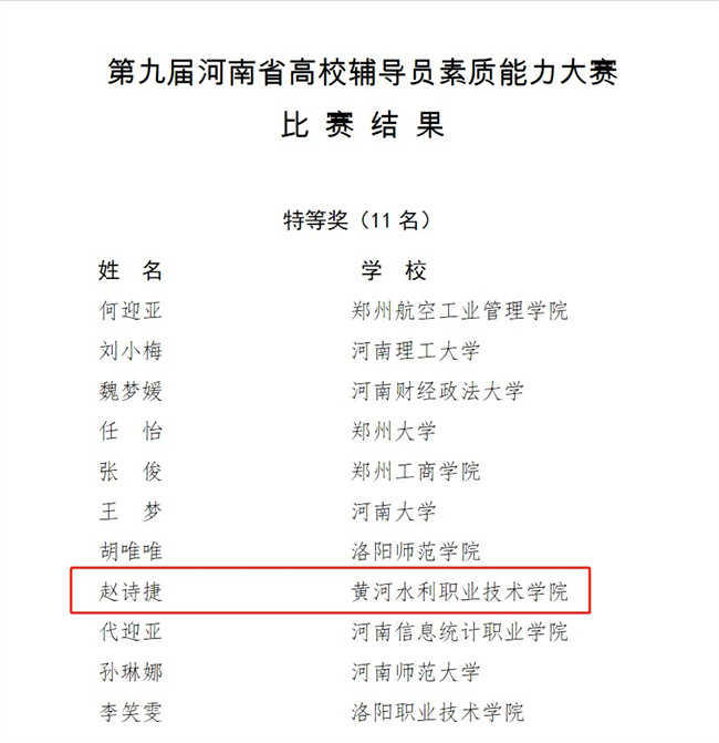 本次大賽由中共河南省高校工委、河南省教育廳主辦,河南理工大學(xué)承辦,是河南省高校輔導(dǎo)員隊伍最高級別賽事。大賽首次采用線上線下相結(jié)合的方式進(jìn)行,分為初賽、復(fù)賽和決賽三個環(huán)節(jié),包括基礎(chǔ)知識測試、案例研討、談心談話三個比賽項目,綜合考察參賽輔導(dǎo)員的理論素養(yǎng)、思想教育能力、語言表達(dá)能力、邏輯思維能力、問題解決能力、個人綜合素質(zhì)等多方面的知識和技能。經(jīng)過各環(huán)節(jié)的激烈比拼,最終11名選手獲得特等獎,11名選手獲得一等獎,31名選手獲得二等獎,19名選手獲得優(yōu)秀獎。