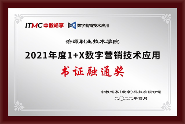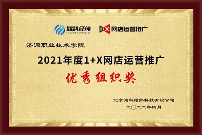 據(jù)悉,濟(jì)源職業(yè)技術(shù)學(xué)院“網(wǎng)店運營推廣”考試組織工作獲得了2021年度的1+X網(wǎng)店運營推廣職業(yè)技能等級證書(中級)全國統(tǒng)一考試“優(yōu)秀組織獎”的榮譽(yù)稱號,“數(shù)字營銷技術(shù)”考點獲得了2021年度“1+X”數(shù)字營銷技術(shù)應(yīng)用“書證融通獎”。