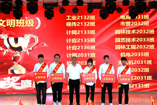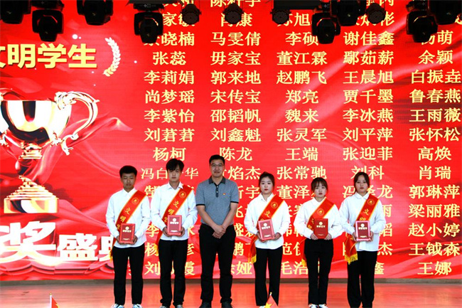 路買(mǎi)林副院長(zhǎng)為獲得文明班級(jí)的學(xué)生代表頒獎(jiǎng)