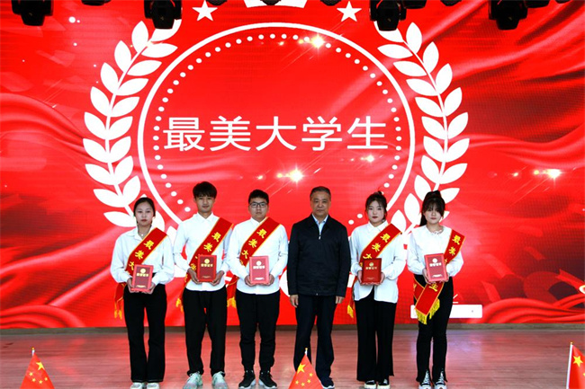 學(xué)院院長(zhǎng)宋宏偉為最美大學(xué)生代表頒獎(jiǎng)