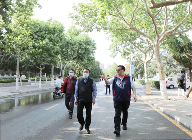黃衛(wèi)東一行在王新奇董事等陪同下,實(shí)地查看校園隔離區(qū)安置、學(xué)生宿舍以及常態(tài)化疫情防控措施落實(shí)等情況。黃衛(wèi)東對(duì)學(xué)校校園文化建設(shè)和綠化美化給予高度贊賞,他希望今后加強(qiáng)校地合作,進(jìn)一步提升合作的內(nèi)容和層次。